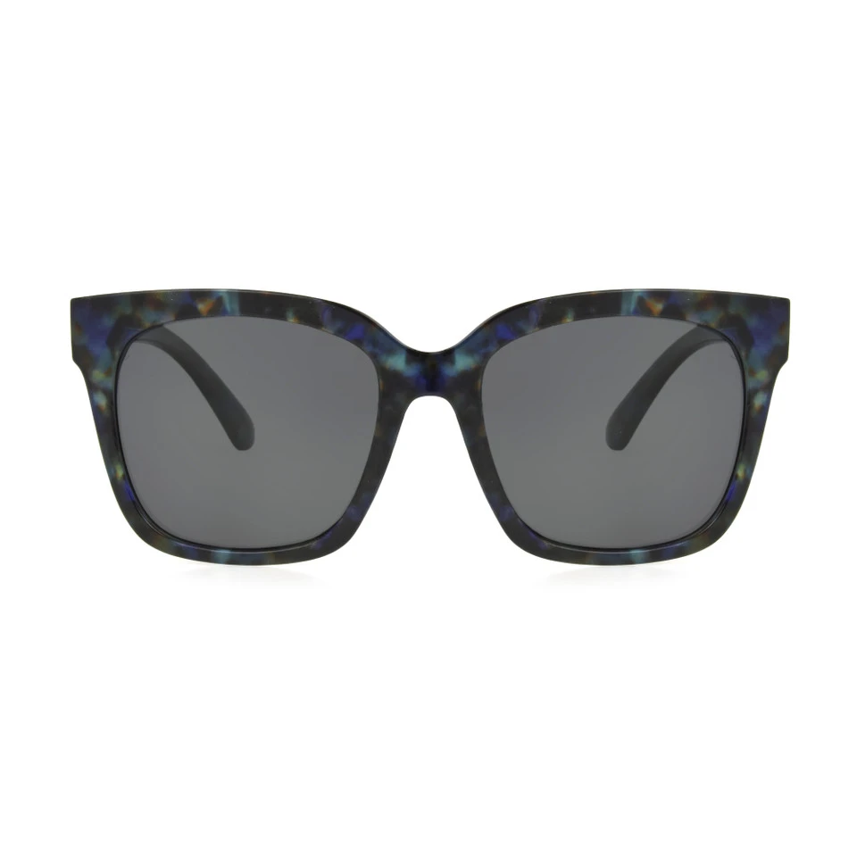 Enjoy using digital devices outsideāand look good doing itāwith Addison. These generously sized sunglasses have a cool and textural-looking blue multi tortoise frame and complementary smoke lenses. The lenses have a reduced polarization treatment that keeps eyes comfortable and lets you see electronic screens more clearly when outdoors.