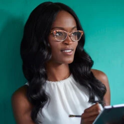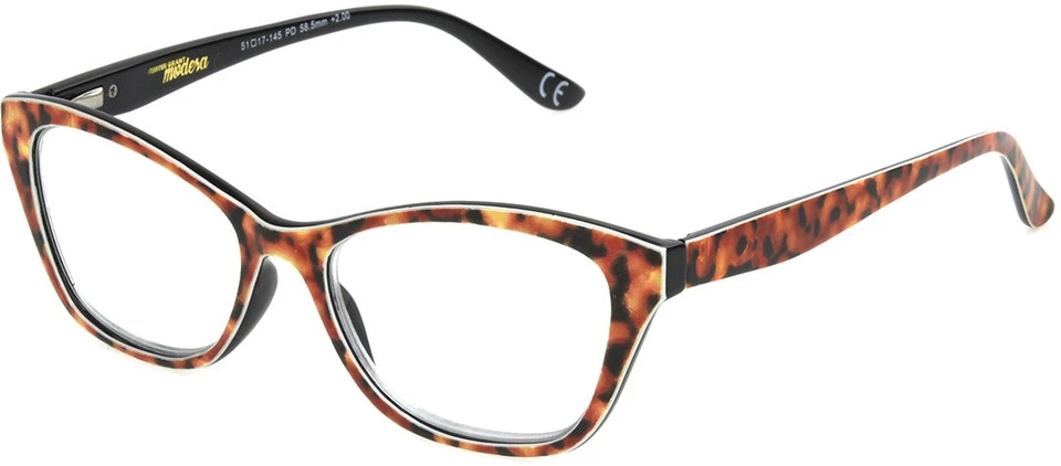 Allie reading glasses from Foster Grant’s Modera collection, pair a golden leopard frame front with a polished black interior in a cat eye frame that is sure to turn heads. Spring hinges make these reading glasses ultra-comfortable for extended wear.