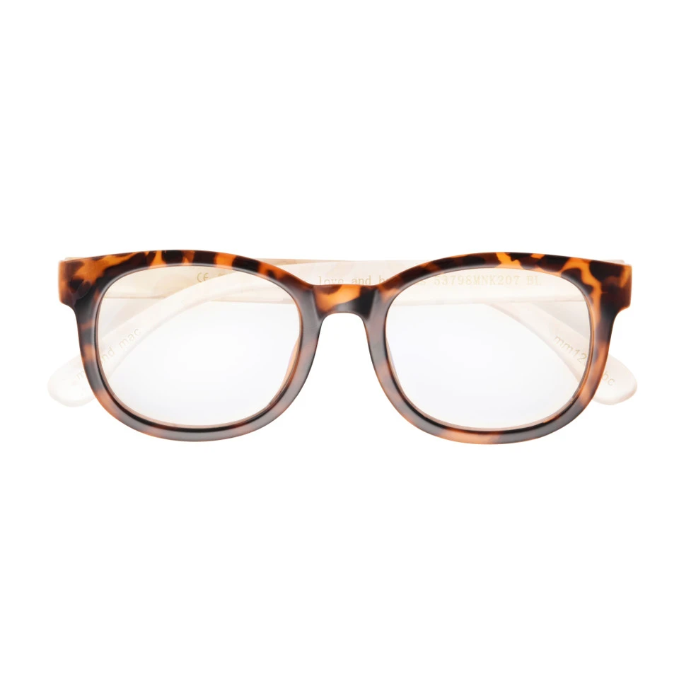It’s business in the front and party in the back with Monkey Monkey Aruba kids’ blue light glasses. They have a classic, square-shaped frame with a fun, tropical-inspired pattern on the temples. The specialty lenses feature blue light technology that filters 30% of potentially harmful blue light* from digital screens, the sun and other natural and artificial sources. Includes a Monkey Monkey pouch.