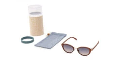 Everyday is a good day to be yourself. B U 2DAY sunglasses by Foster Grant celebrates that with its own distinctive style. The frame has a gentle cat eye shape made out of milky and dark brown horn plastic* and satin bronze-finished metal. The overall warm look is completed by the smoke grey-to-brown gradient of the lenses. The lenses are scratch-resistant and give you 100% UVA-UVB protection. Comes with a light grey tensile pouch (marked with A4114A® — All For One, One For All) and coordinating Moonlite Blue rubber bracelet in a reusable paper tube.