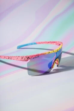 If you’re going to do something, go all the way. Be Bold sunglasses by Foster Grant shows unabashed personality in its playful style and color scheme. It has a shield-style frame made out of 50% recycled plastic* in shades of neon yellow, orange, pink and blue, all accented with white and black splatter. Teal gradient lenses finish off the vibrant look, and they are scratch-resistant and provide 100% UVA-UVB protection. Comes with a dark grey tensile pouch (marked with A4114A® — All For One, One For All) and coordinating black rubber bracelet in a reusable paper tube.