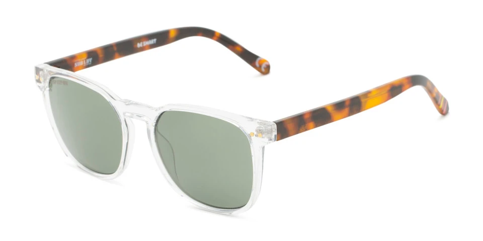 Show everyone how smart you are about your style when you wear Be Smart sunglasses by Foster Grant. They have a square frame made out of clear plastic* with double-sprayed tortoise temples. Scratch-resistant green smoke lenses pop against the frame and offer 100% UVA-UVB protection. Comes with a navy tensile pouch (marked with A4114A® — All For One, One For All) and coordinating Strong Blue rubber bracelet in a reusable paper tube.