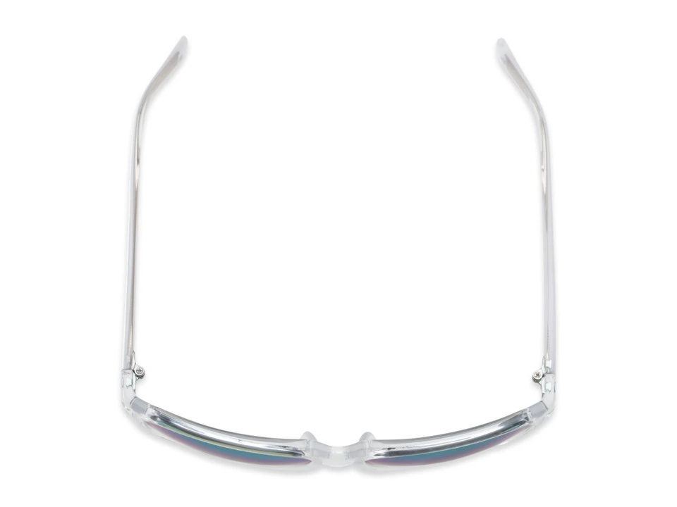 You do you, boo! Be Unique sunglasses by Foster Grant were designed to help you express yourself with pride. It has a square frame made out of clear plastic* with white temples. The lenses are smoke grey with a vibrant rainbow-striped mirror. Plus, the lenses are scratch-resistant and provide 100% UVA-UVB protection. Comes with a light grey tensile pouch (marked with A4114A® — All For One, One For All) and coordinating rainbow-colored rubber bracelet in a reusable paper tube.