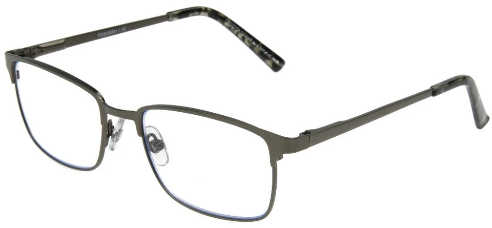 The Foster Grant® Braydon Multi Focus™ reader is now available in a Multi Focus™ Blue version, delivering the functionality of Multi Focus™ readers that you’ve grown to love with the added benefit of filtering 30% of potentially harmful blue light.* This classic men’s style – with a slim, rectangular gunmetal frame – features three different strengths in one pair of glasses. Also includes a case and cleaning cloth.