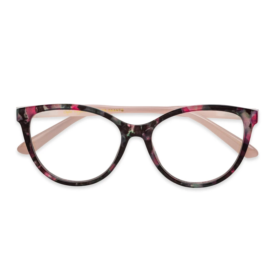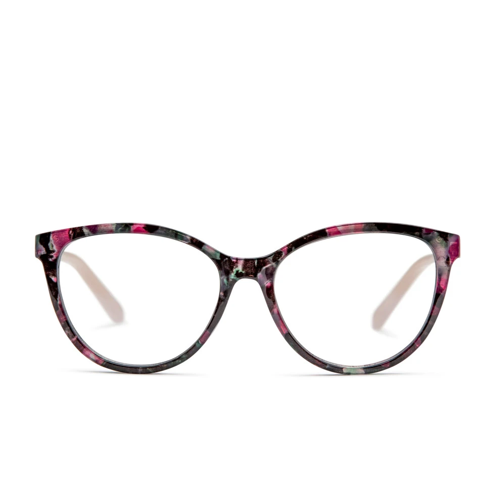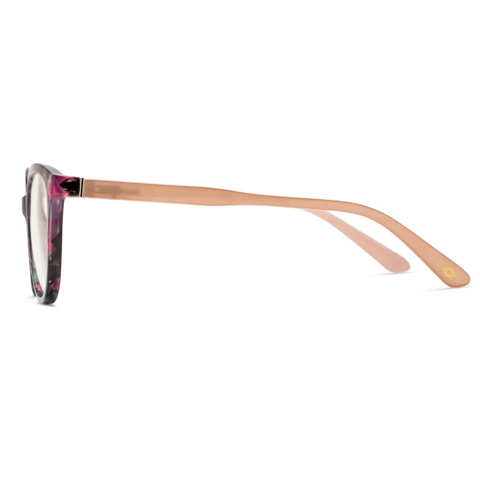 High-energy fuschia adds welcome bits of color to this feminine black cat eye tortoise frame that enhances your look while filtering up to 30% of potentially harmful blue light*.