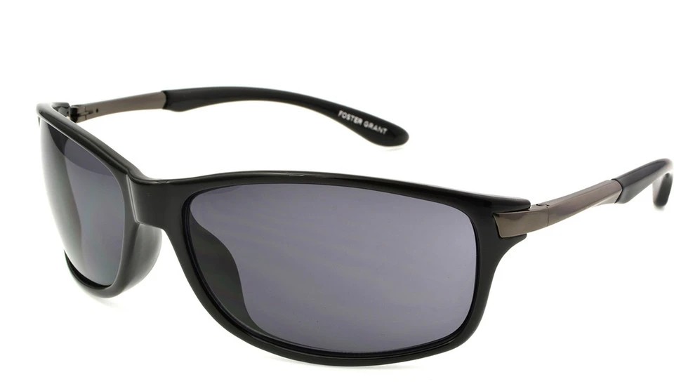 Chaplin men’s sunglasses from Foster Grant® give you full rectangular full-frame lenses set in a shiny black body that wraps around your face and temples for a comfortable, secure fit. The wide stance and black theme of Chaplin sunglasses have the classic good looks you want plus important eye protection.