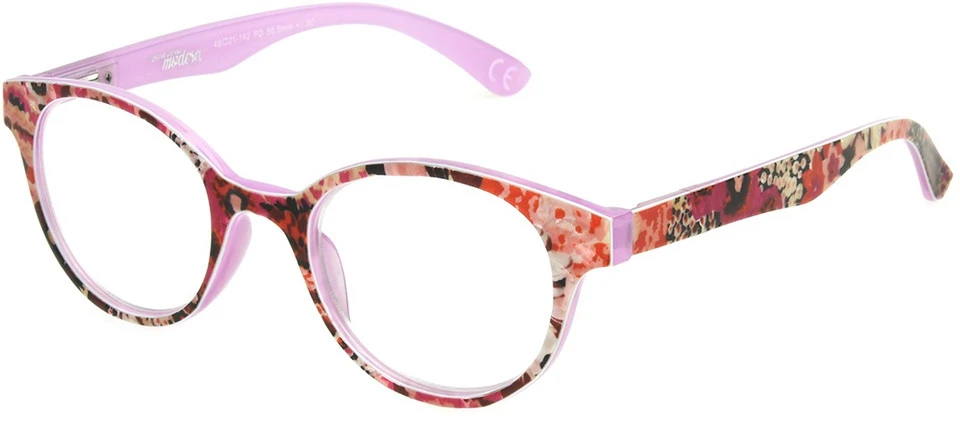 A vibrant pink floral pattern brings these readers to life. A light pink frame base with a rounded lens makes these a stand out part of Foster Grant’s Modera collection.