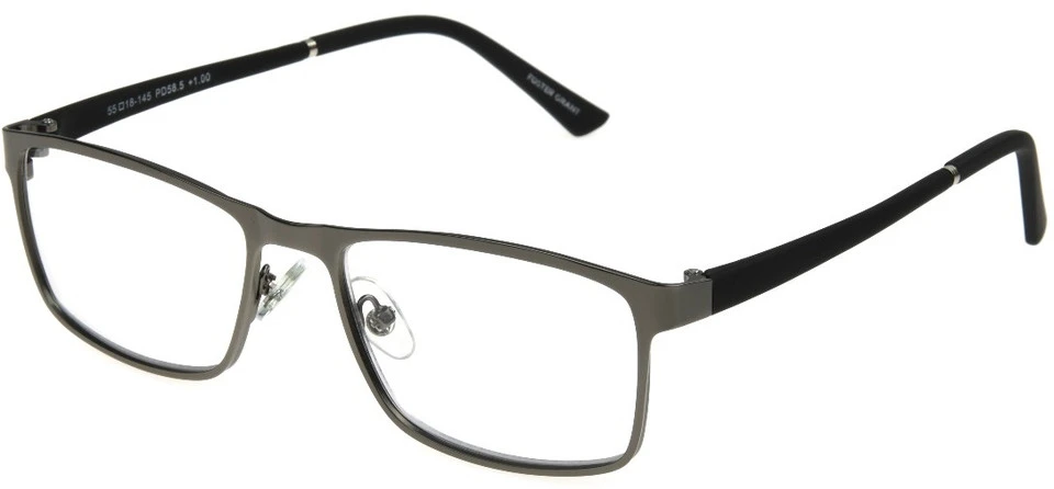 A two-tone gunmetal color scheme complements these Eli full-frame men’s reading glasses from Foster Grant.
