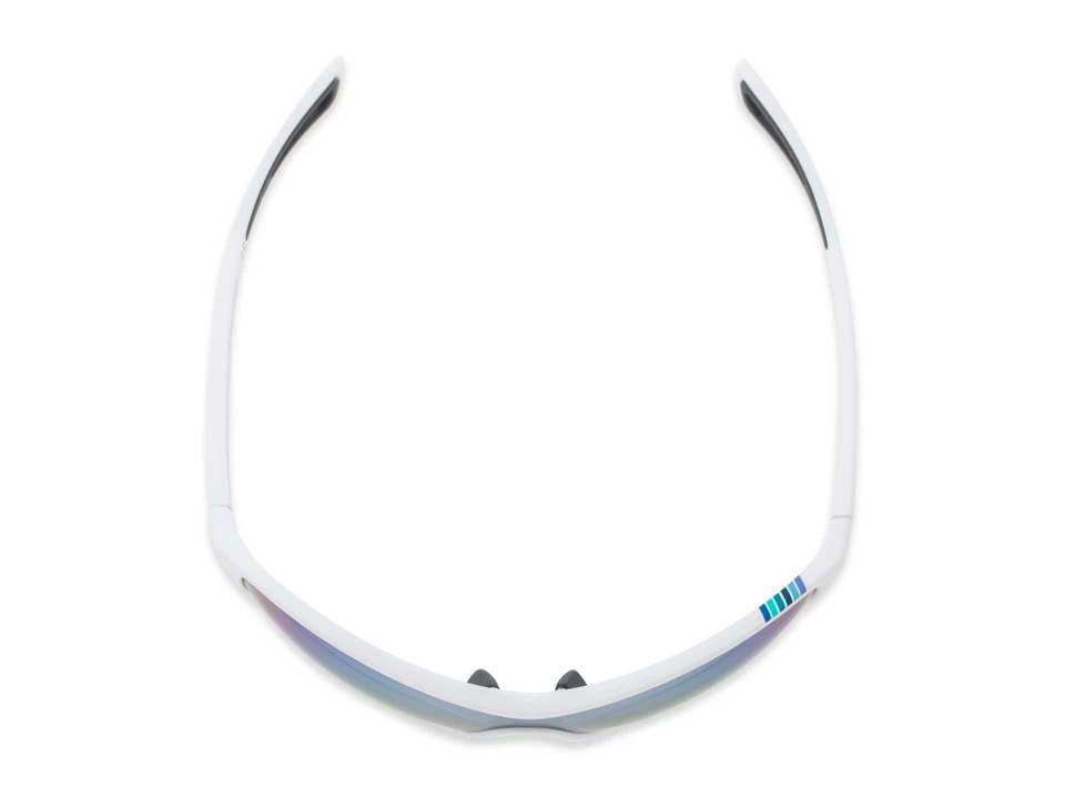 It can be a scary world out there. Thankfully, Embrace the Unknown sunglasses by Foster Grant are here to help you face your fears and give you confidence wherever you go. The wide wrap, blade-style frame is made out of matte white 50% recycled plastic*, with open temples accented by slip-resistant light grey rubber. Ice blue-to-clear gradient lenses complete the all-around cool look. The lenses are also scratch-resistant and give you 100% UVA-UVB protection. Comes with a mint green tensile pouch (marked with A4114A® — All For One, One For All) and coordinating Dynasty Green rubber bracelet in a reusable paper tube.