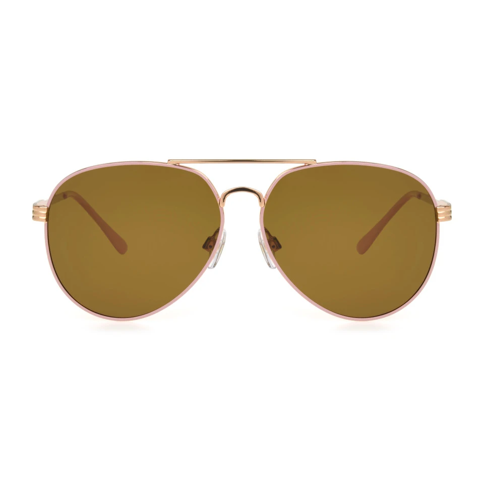 Stylish eyewear designed for today’s digital world. Everly features a shiny rose gold metal aviator style frame with pretty pale pink accents. Warm brown-tinted lenses make it comfortable for you to be outside and see the screens of any of your digital devices more clearly, even in bright sunshine.