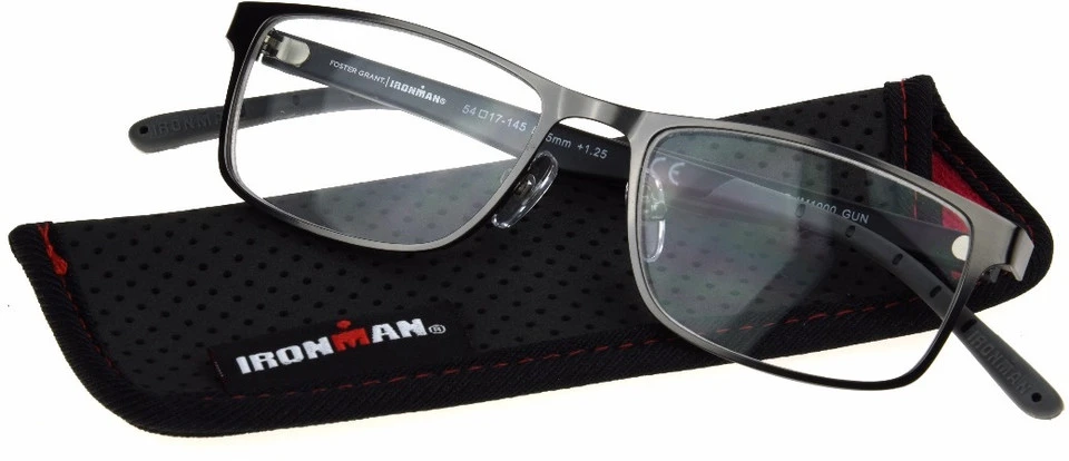 Medium-thick black temples merge into gunmetal-colored frames for an understated look. These glasses are designed to be lightweight and rest easily on most faces enabling long periods of wear without fatigue. The large rectangular lenses provide plenty of viewing area and are available in a wide range of popular magnifications from 1.25 to 2.50. So, you’re likely to find a power that’s right for you. The lenses of these IM1000 readers are built to deliver long-term clarity. They are surfaced with a protective coating that resists scratches and impact so say goodbye to annoying surface blemishes. As for carrying and storing your reading glasses, IM1000 readers come with a color-matched travel/storage case. Ironman performance and style are yours with these IM1000 men’s readers.