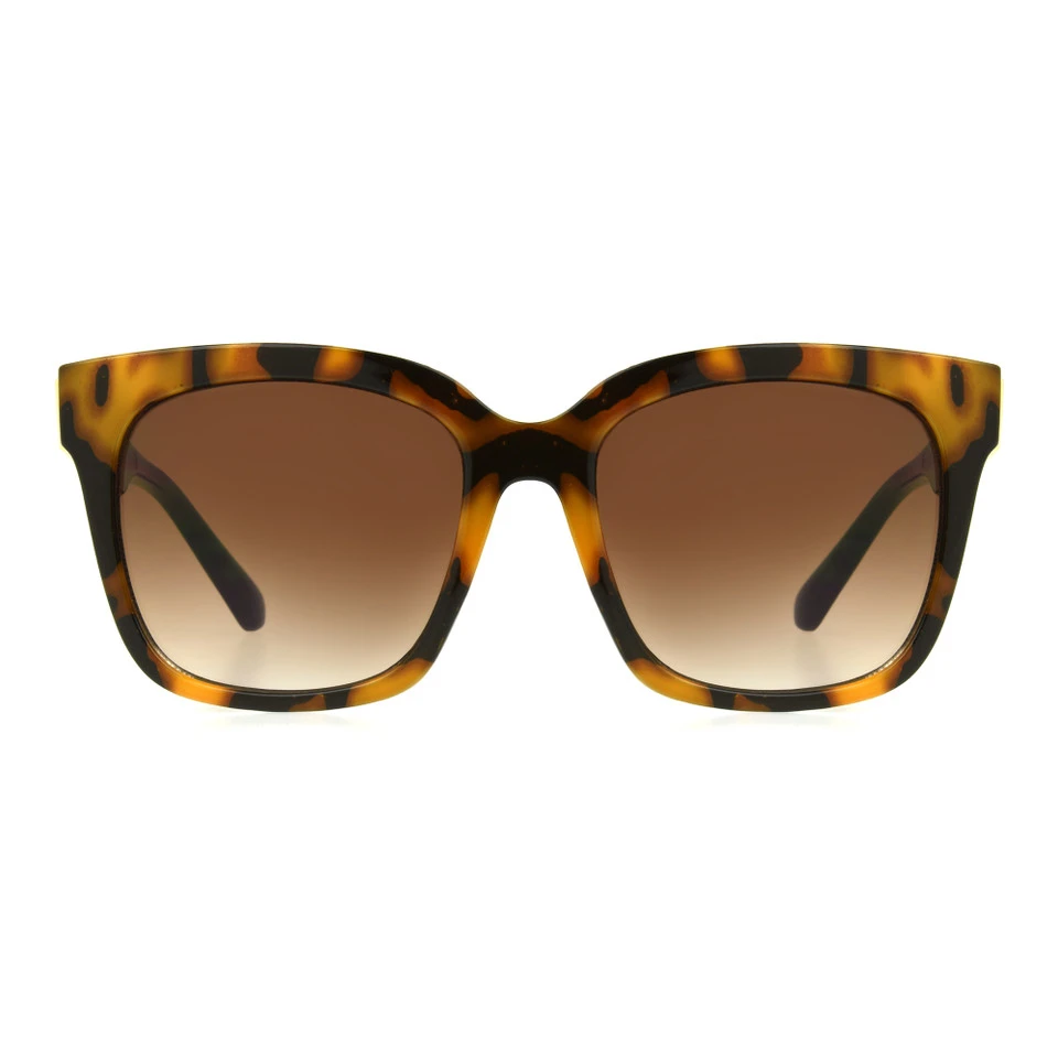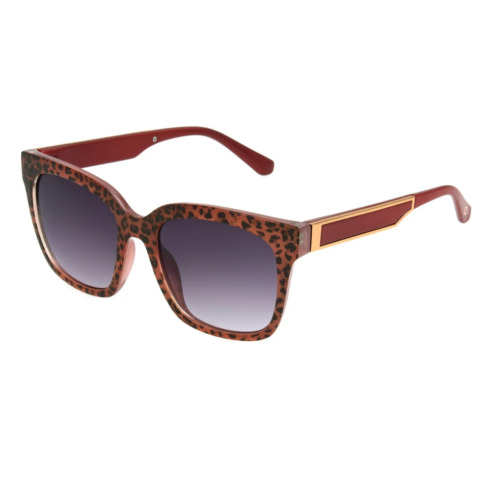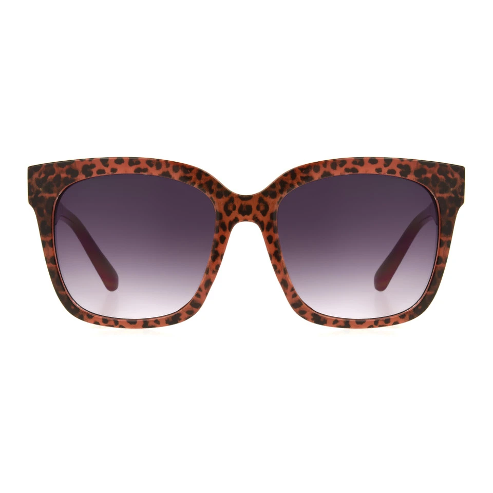 Animal print is paired with shiny metal temple accents in these head-turning oversized sunglasses from the Sofia Vergara® x Foster Grant® eyewear collection. Textured details on the temples of these square frames add next-level flair while scratch- and impact-resistant lenses offer 100% UVA-UVB protection.