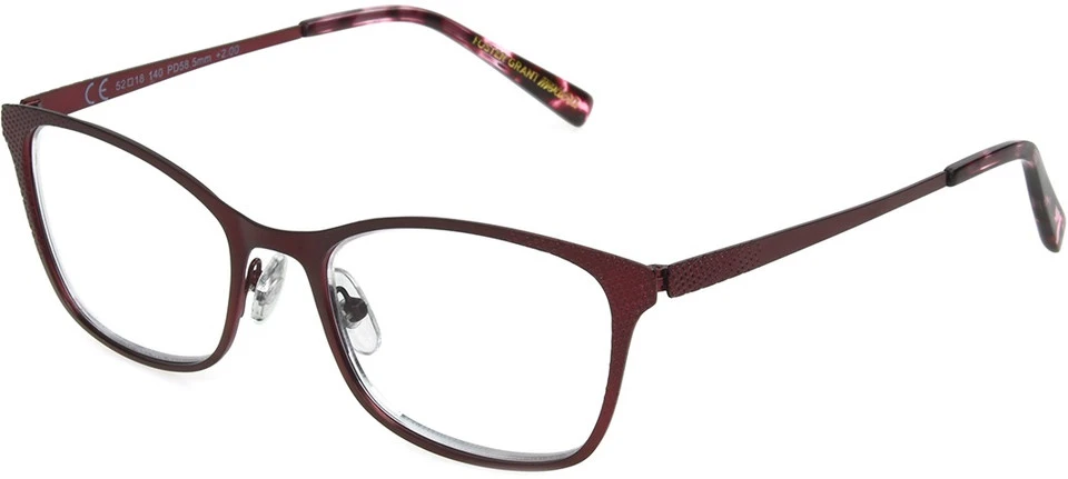 Jenn reading glasses are part of Foster Grant’s Modera collection. They feature a rich matte wine finish with delicate details on a metal frame.