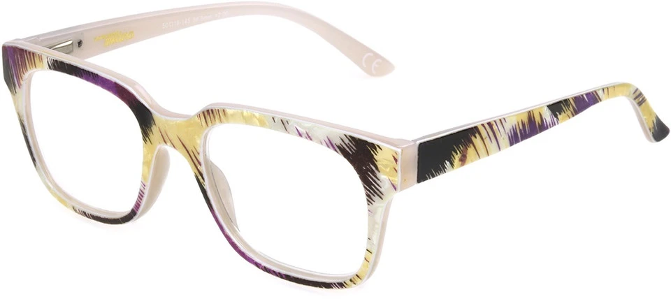 Wrapped in a rich, multi-colored opaque pattern over a milky light pink, Joanie reading glasses feature a square frame that makes a bold statement. A part of Foster Grant’s Modera collection, these frames deliver just the right amount of color and shine to your look.