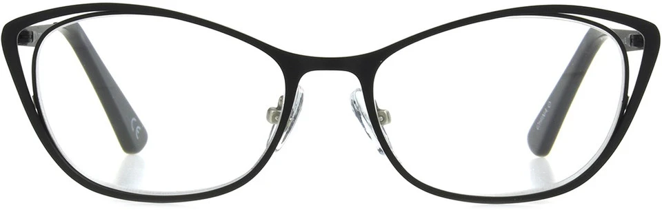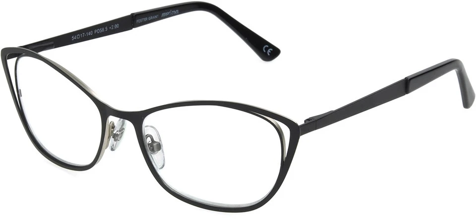 Foster Grant’s Modera collection brings you Lizzie. These cat eye readers bring fun to a simple matte black metal frame with a unique lens design that cuts out at the corners for a new take on the cat eye.