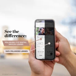 These sunglasses feature cutting edge Polarized for Digital* technology. They provide you the usual benefits of polarized lenses—reduced glare and greater comfort–while also making it easier to see your cell phone, e-reader, and other digital screens outside.