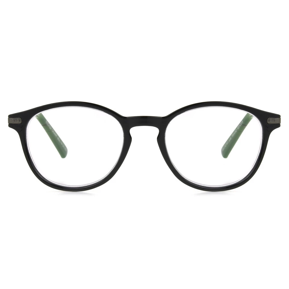 The McKay Multi Focus™ Reader has three different powers that allow you to use them for reading, computer use, and interacting. The magnification is strongest on the bottom of the lens (what you use for reading), the middle portion is slightly less than your reading power, and the top portion of the lens is half of your reading power. This round style is flattering for both men and women. These comfortable frames offer spring hinges, an anti-reflective lens coating, and scratch-resistant lenses. Best suited for narrow faces. This pair comes with the pouch and cleaning cloth pictured for easy storage and protection. Shop our entire Multi Focus™ by Foster Grant® collection here.