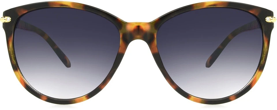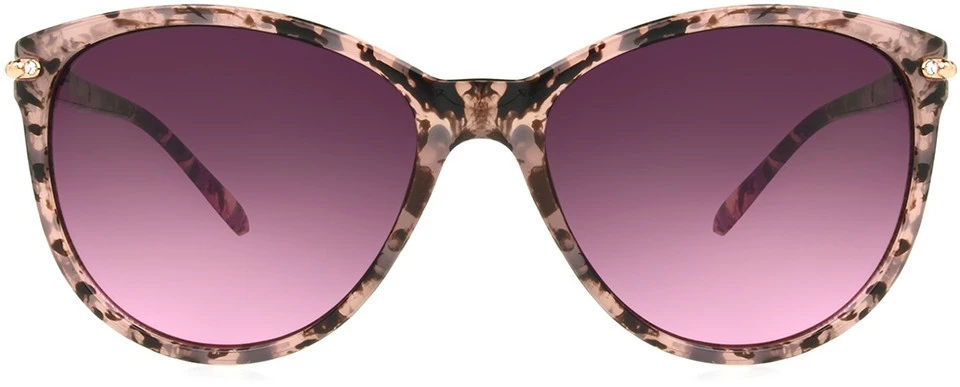 A milky tortoise print adorns the plastic frames of these chic round Sofia Vergara® x Foster Grant® women’s sunglasses. Upping the style ante is a row of metal studs and inlaid clear crystals that runs from the end piece down the temple, while scratch-and impact-resistant lenses offer 100% UVA-UVB sun protection.