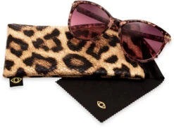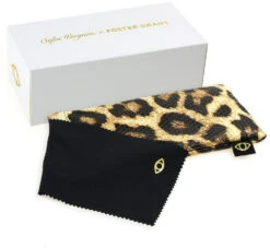 The leopard print case with spring closure and built-in cleaning cloth is both stylish and practical.