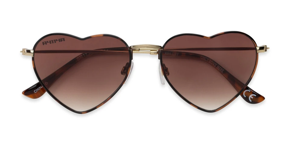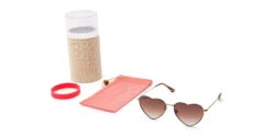 For anyone who typically wears their heart on their sleeve, may we propose the eyes instead? Make your affection for those around you immediately apparent with Only Love Here sunglasses by Foster Grant. The heart-shaped frames give off a complete sense of warmth with brown tortuga-patterned plastic fronts and tips and brushed gold metal temples and bridge. The brown gradient lenses are scratch-resistant and provide 100% UVA-UVB protection. Comes with a pink tensile pouch (marked with A4114A® — All For One, One For All) and coordinating Azalea Pink rubber bracelet in a reusable paper tube.