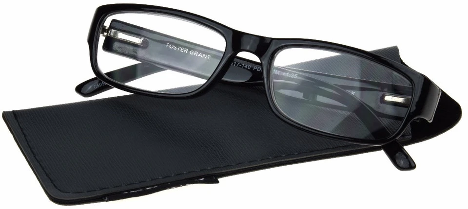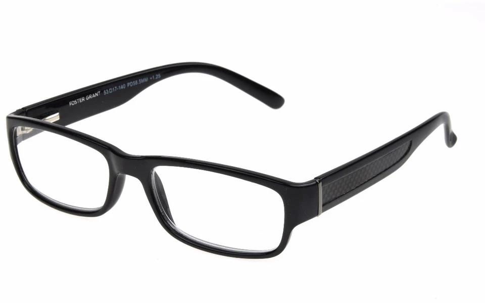 Get sturdy, full-bodied style in these Rocket men’s reading glasses from Foster Grant. The thick black frame is retro all the way.