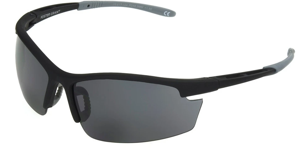 Shake SunReadersĀ® by Foster GrantĀ® bring the best in reading glass clarity and sunglass eye protection to outdoor reading, and do it with sport ready style. Shake’s matte black wraparound semi-rimless frame is accented with gray temple tips.