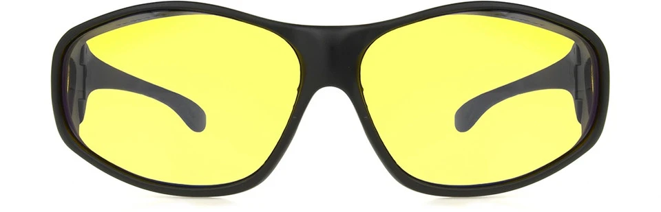 High quality nylon frame with polycarbonate impact-resistant lenses. Anti Reflective coating to reduce glare. Lenses pass global standard for traffic light transmittance. Lenses meet ANSI Z80.3-2010: strictest UV blocking requirements. Yellow tint helps enhance contrast. Lenses meet ANSI Z80.3-2010: strictest UV blocking requirements. Wear over prescription glasses or alone.